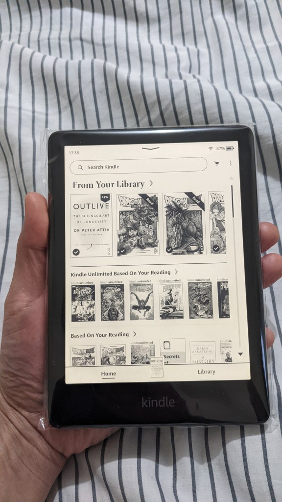 After months (more like years) of spying, looking, thinking, reading reviews, asking for opinions; I finally got my hands on Amazon Kindle – Paperwhite 16GB 11th Gen to be exact.