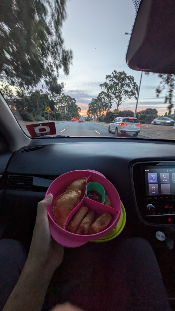 Enjoying some snack enroute to basketball - We can choose to react to it, get pissed off, starts tailgating, or honking. This never ends well. Best case scenario is someone is recording the road rage session and you are famous on Youtube.